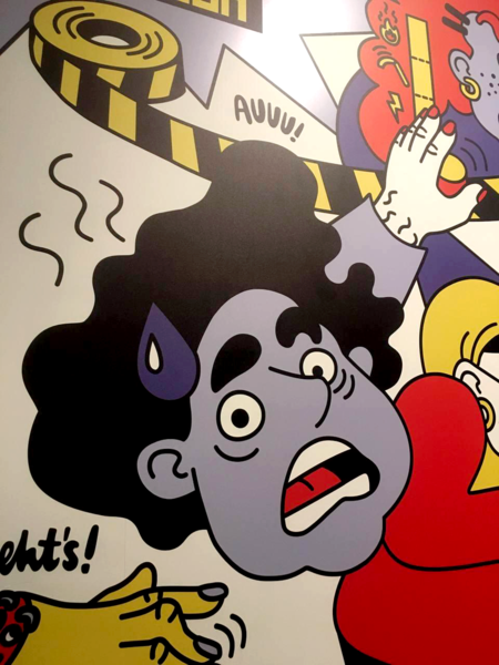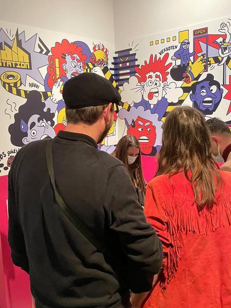 Für die großflächige Illustration auf der Wand habe ich alle Emotionen der Spielenden mit diversen