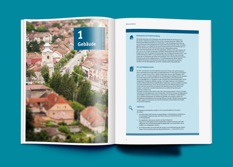Broschüre zu Einsparpotenzialen von CO2-Emissionen durch Modernisierung und Sanierung im Gebäudebereich.
